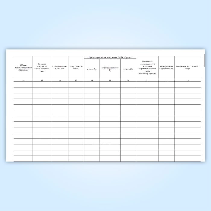 Журнал испытания проб асфальтобетонных смесей, взятых из смесителя (форма 10) в Омске купить