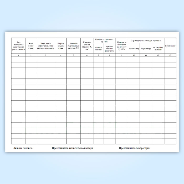 Журнал контрольных испытаний прочности сцепления в кладке на строительной площадке в Омске купить