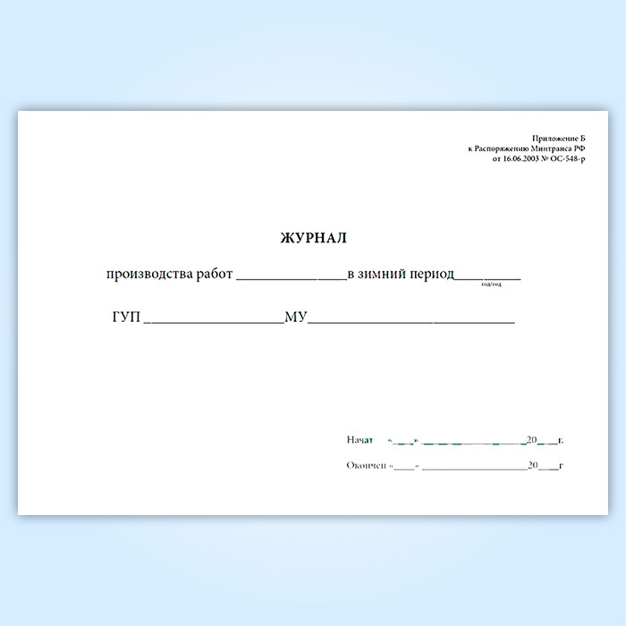 Журнал производства работ в зимний период, выполненных за время дежурства в Омске купить