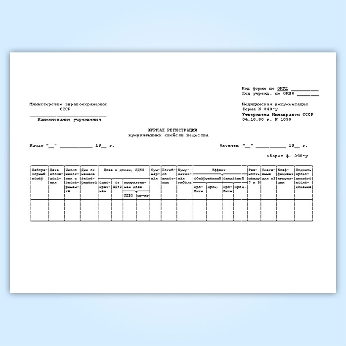 Журнал регистрации кумулятивных свойств вещества (форма № 340-у) в Омске купить