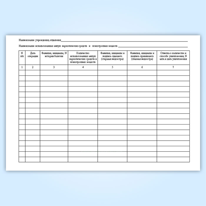Журнал регистрации операций с использованными ампулами из-под наркотических средств и психотропных веществ у главной медицинской сестры стационарной медицинской организации в Омске купить
