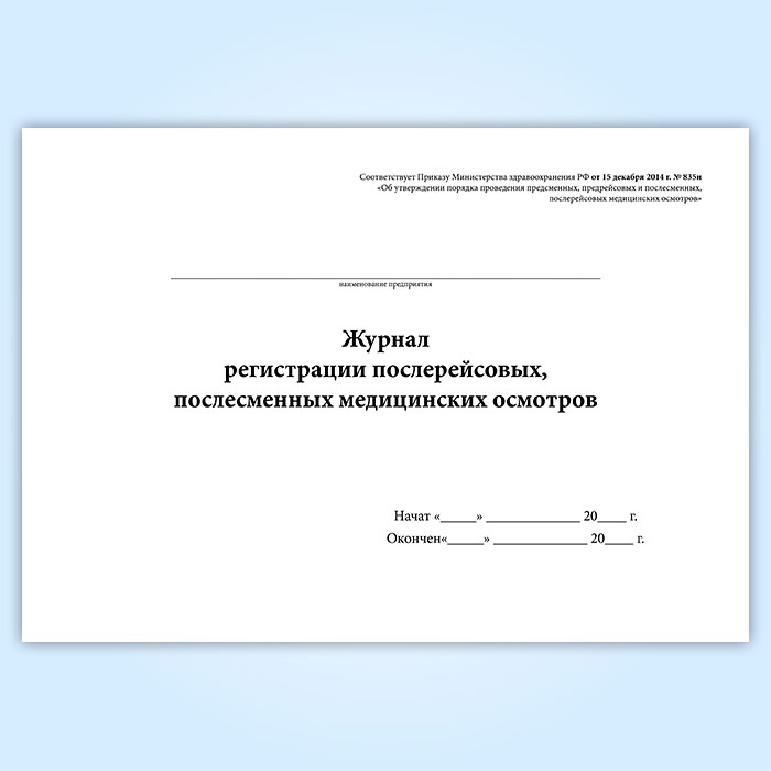 Журнал регистрации послерейсовых, послесменных медицинских осмотров в Омске купить