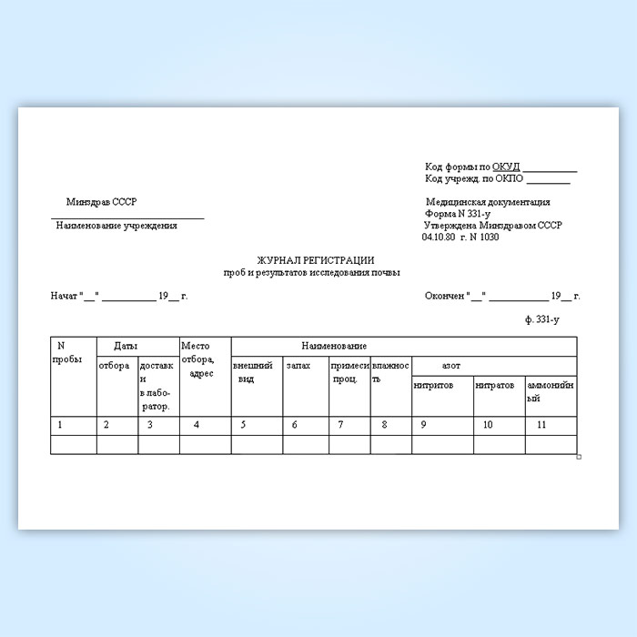 Журнал регистрации проб и результатов исследования почвы (форма № 331-у) в Омске купить