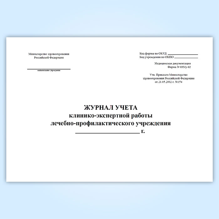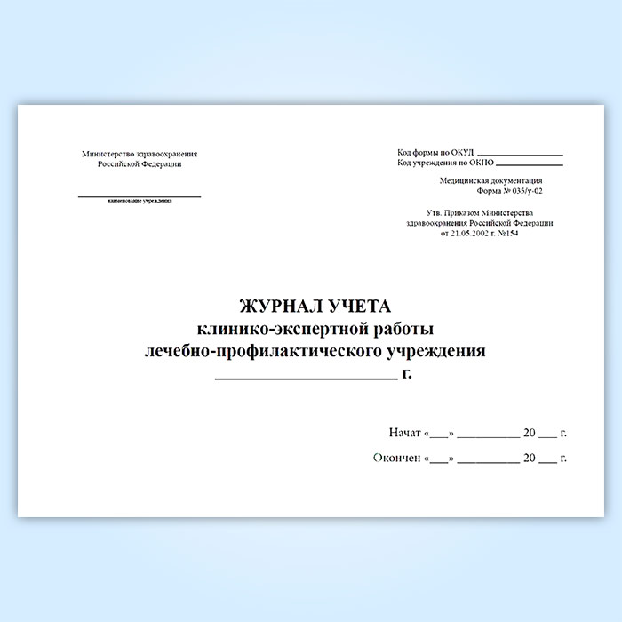 Журнал учета клинико-экспертной работы лечебно-профилактического учреждения (форма № 035/у-02) в Омске купить