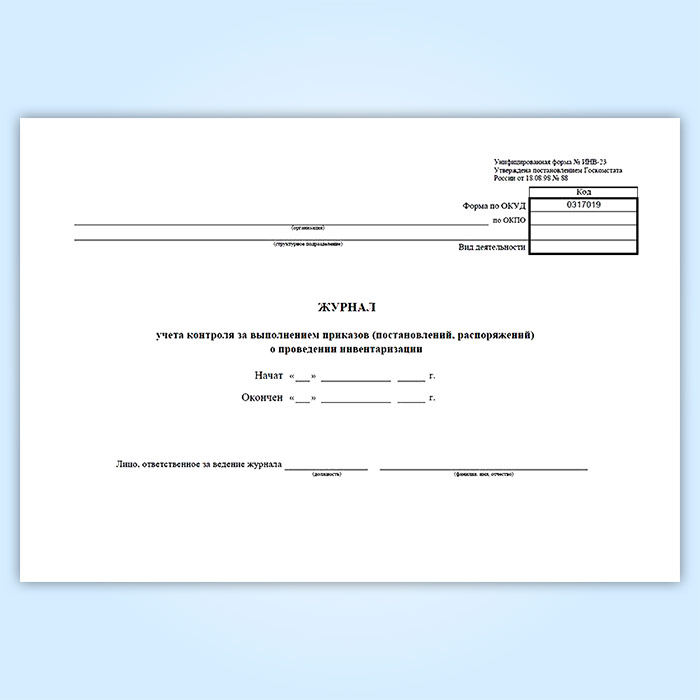 Журнал учета контроля за выполнением приказов (постановлений, распоряжений) о проведении инвентаризации (унифицированная форма ИНВ-23) в Омске купить