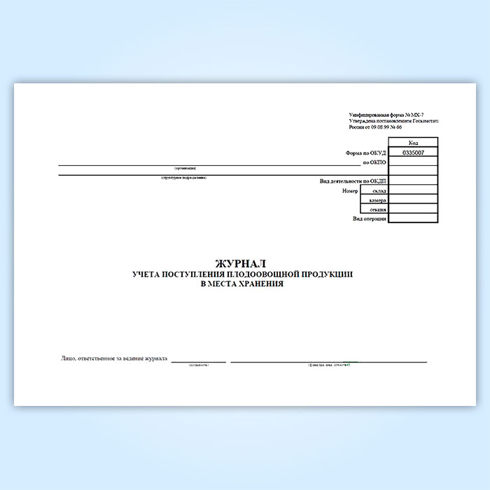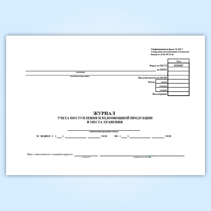 Журнал учета поступления плодоовощной продукции в места хранения (форма МХ-7) в Омске купить