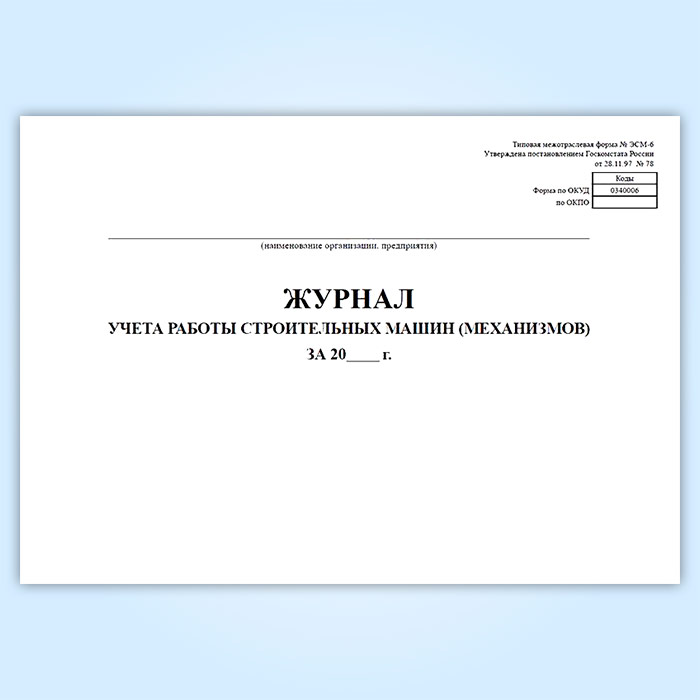Журнал учета работы строительных машин (механизмов) (форма ЭСМ-6) в Омске купить