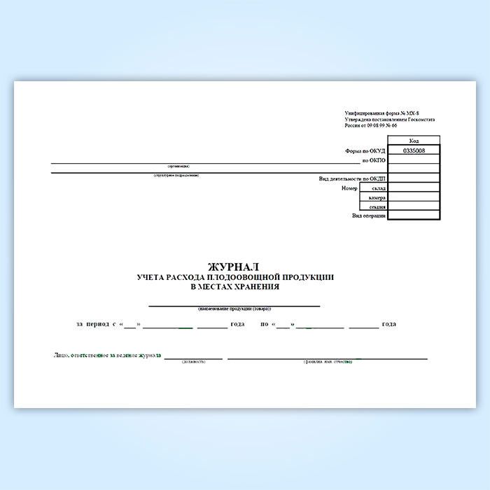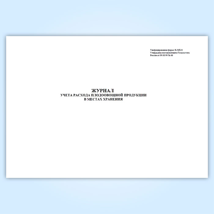 Журнал учета расхода плодоовощной продукции в местах хранения (форма МХ-8) в Омске купить