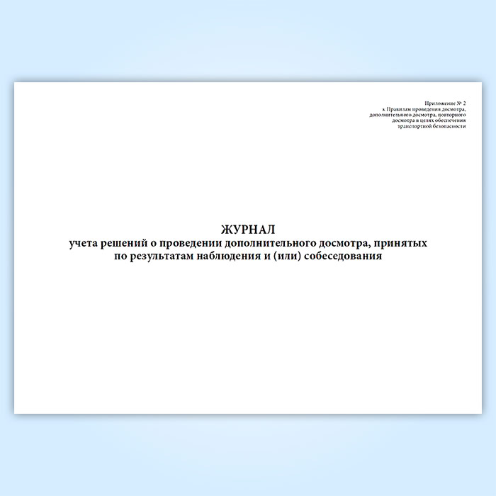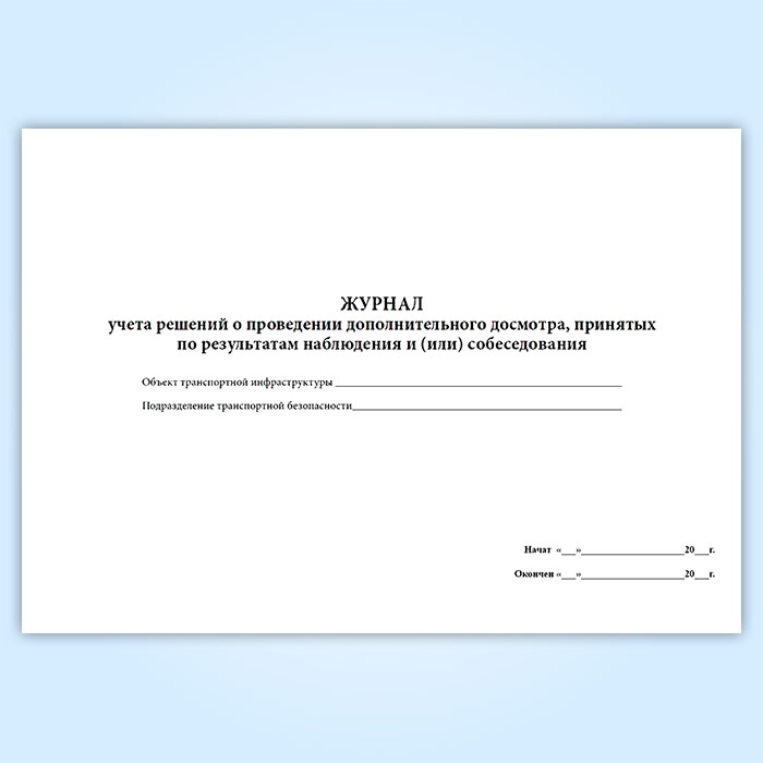 Журнал учета решений о проведении дополнительного досмотра, принятых по результатам наблюдения и (или) собеседования в Омске купить