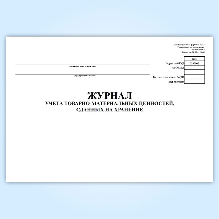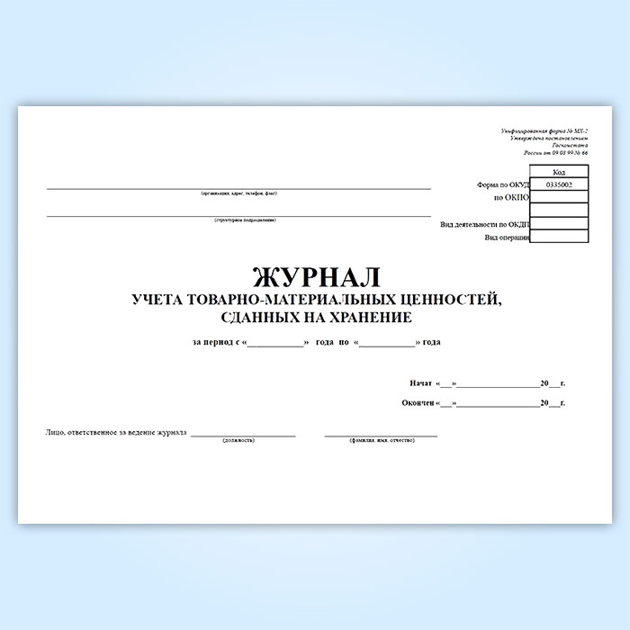 Журнал учета товарно-материальных ценностей, сданных на хранение (форма № МХ-2) в Омске купить