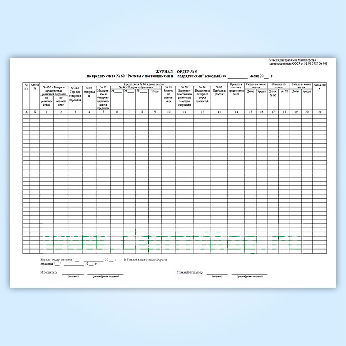 Журнал-ордер № 5 по кредиту счета № 60 «Расчеты с поставщиками и подрядчиками» (сводный) в Омске купить