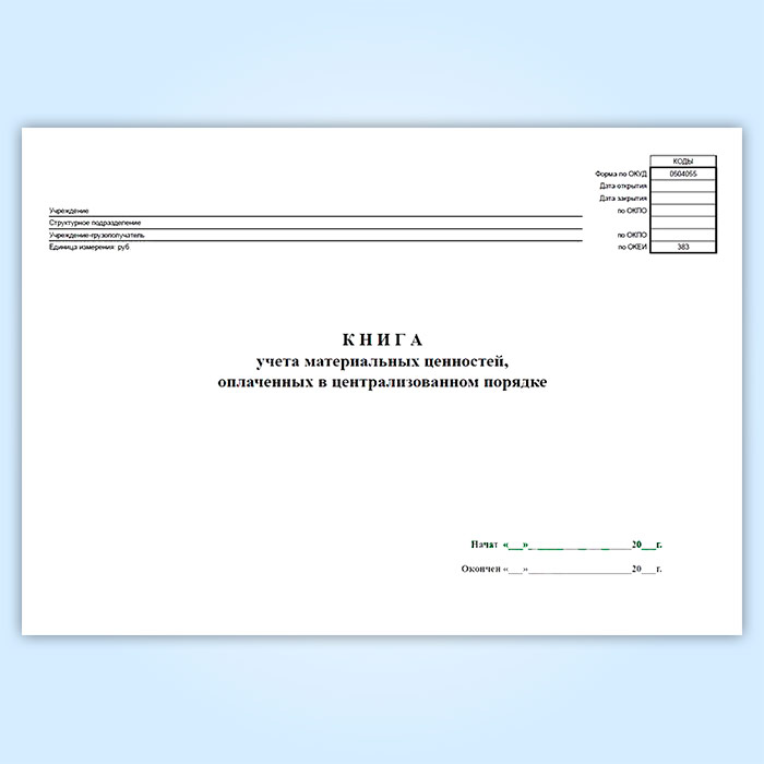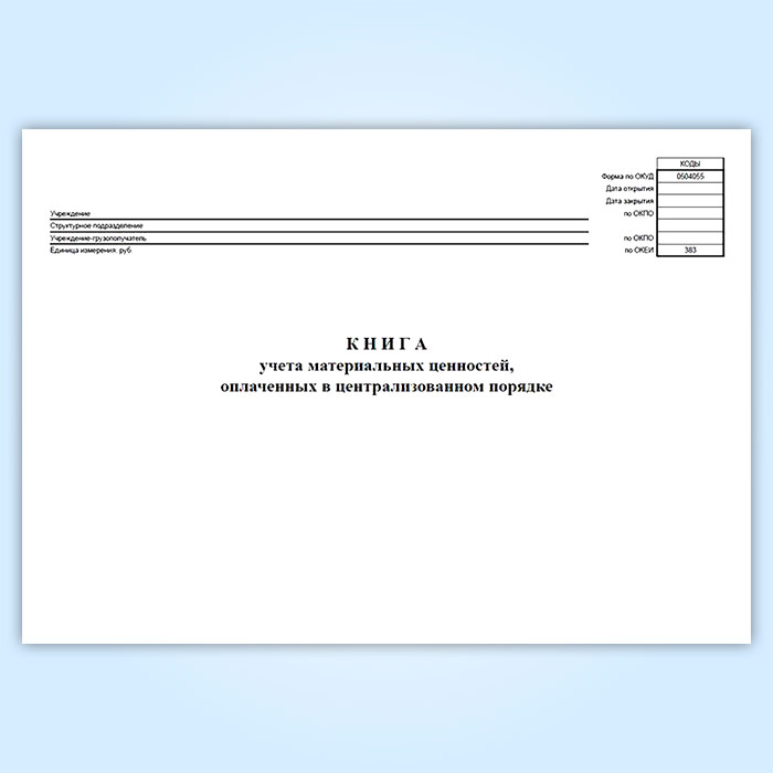 Книга учета материальных ценностей, оплаченных в централизованном порядке (код формы 0504055) в Омске купить
