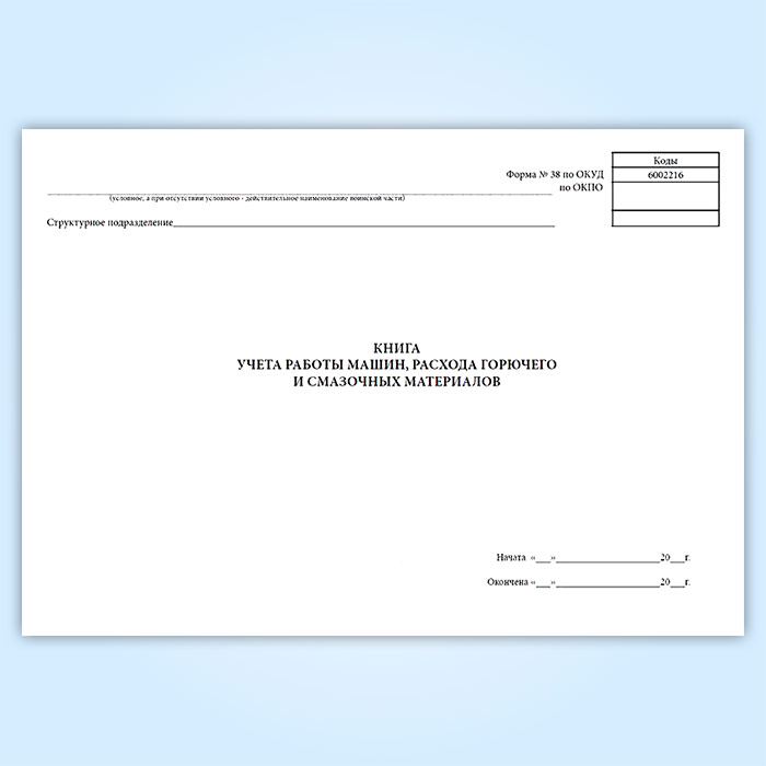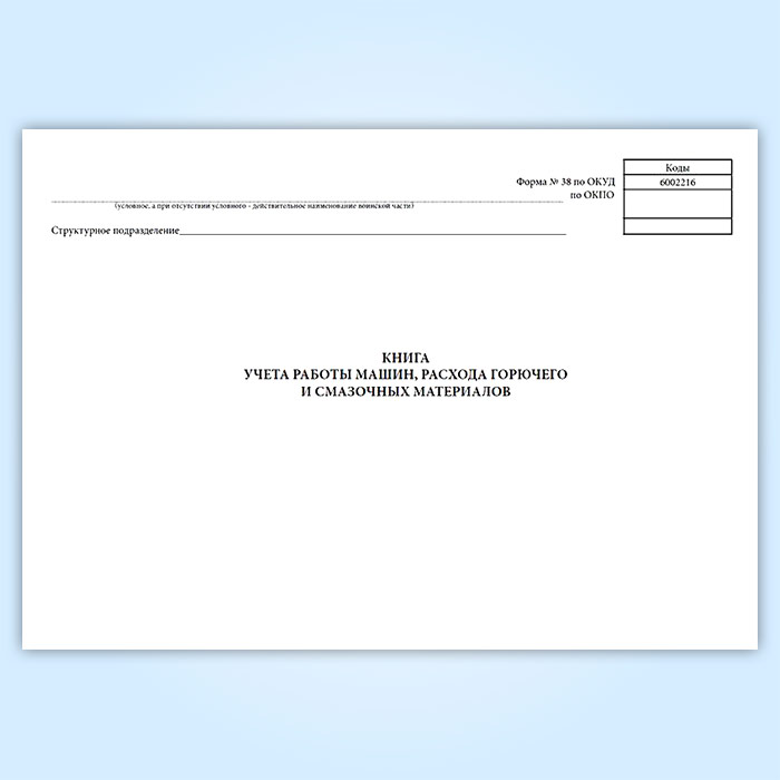 Книга учета работы машин, расхода горючего и смазочных материалов (форма 38, ОКУД 6002216) в Омске купить