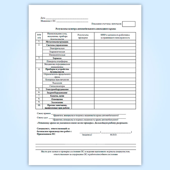 Вахтенный журнал машиниста автомобильного стрелового крана в Омске купить