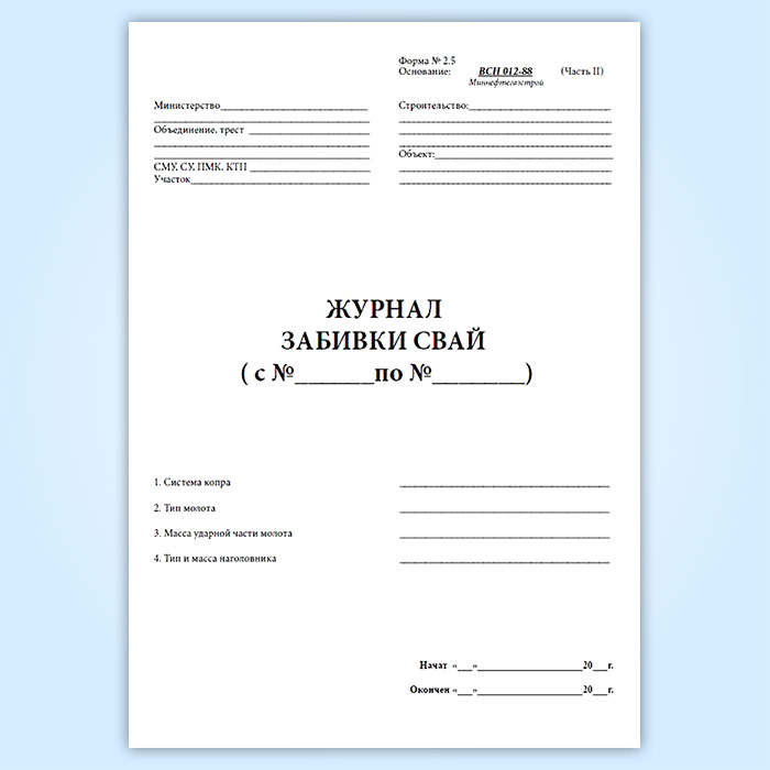 Журнал забивки свай (форма 2.5) в Омске купить
