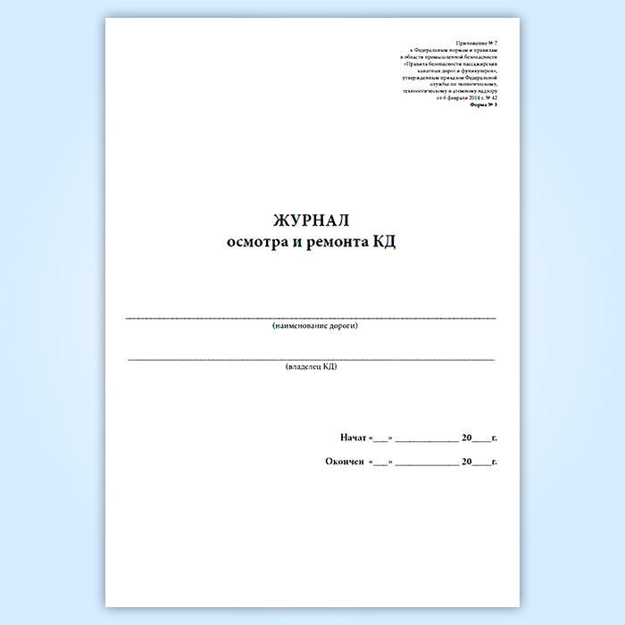 Журнал осмотра и ремонта канатной дороги. Несущий канат (форма № 1) в Омске купить