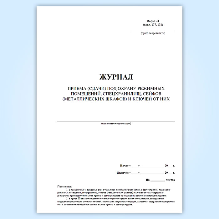 Журнал приема (сдачи) под охрану режимных помещений, спецхранилищ, сейфов (металлических шкафов) и ключей от них в Омске купить