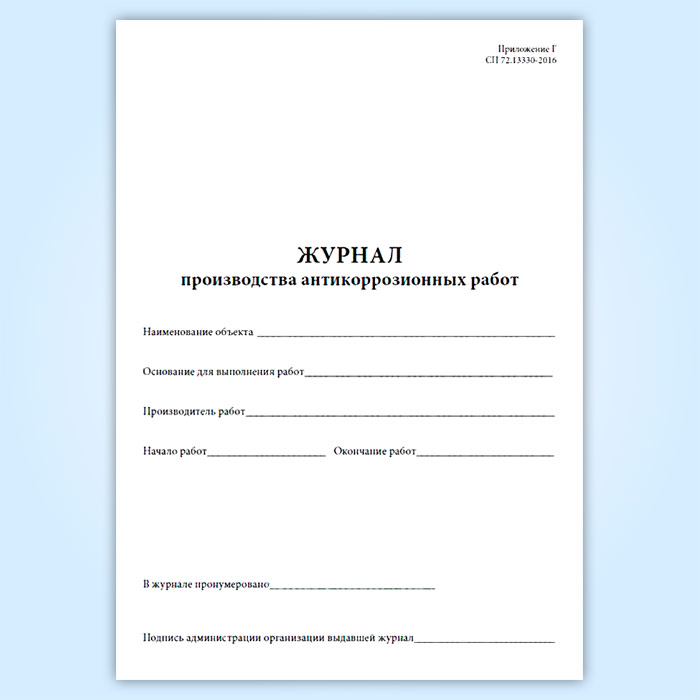 Журнал производства антикоррозионных работ в Омске купить