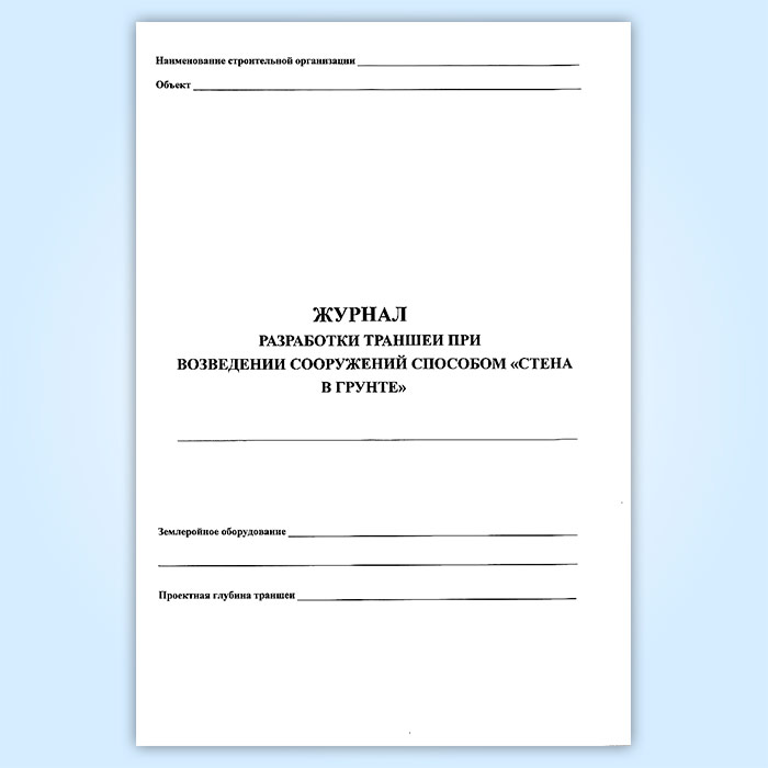 Журнал разработки траншеи при возведении сооружений способом «стена в грунте» в Омске купить