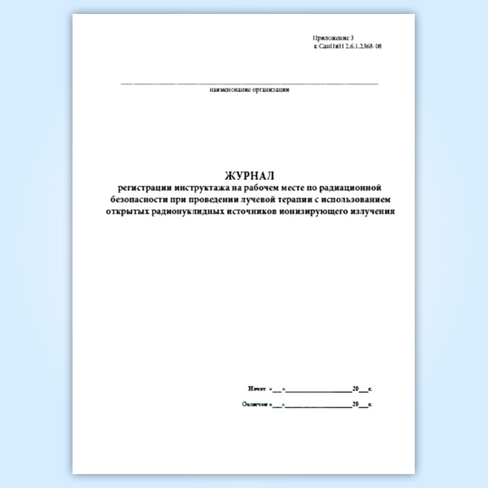 Журнал регистрации инструктажа на рабочем месте по радиационной безопасности при проведении лучевой терапии с использованием открытых радионуклиидных источников ионизирующего излучения в Омске купить
