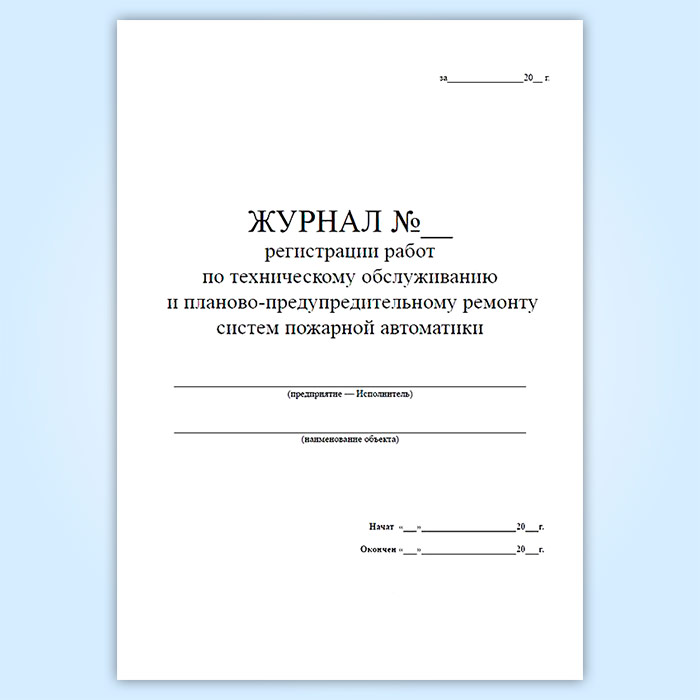 Журнал регистрации работ по техническому обслуживанию и планово-предупредительному ремонту систем пожарной автоматики в Омске купить