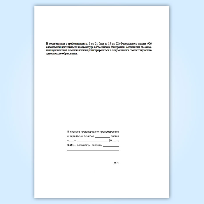 Журнал регистрации соглашений об оказании юридической помощи, заключаемых адвокатами с гражданами и юридическими лицами в Омске купить