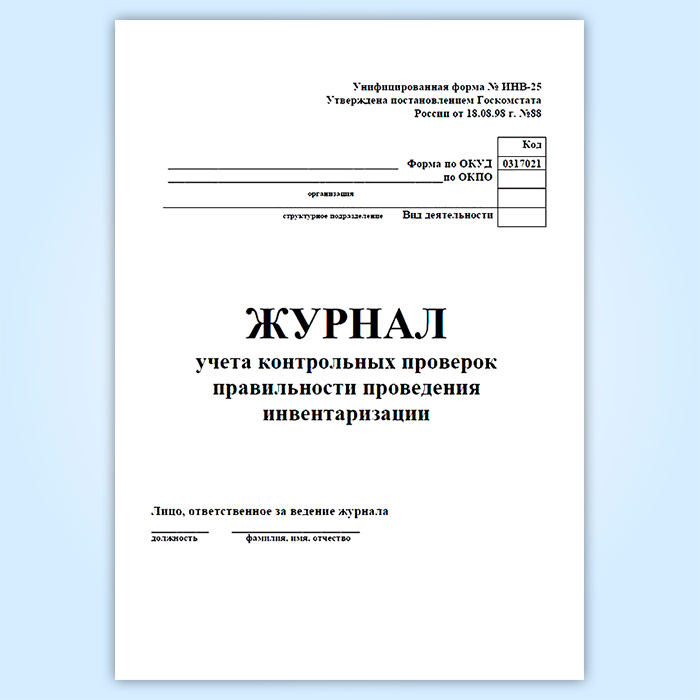 Журнал учета контрольных проверок правильности проведения инвентаризаций (форма ИНВ-25) в Омске купить