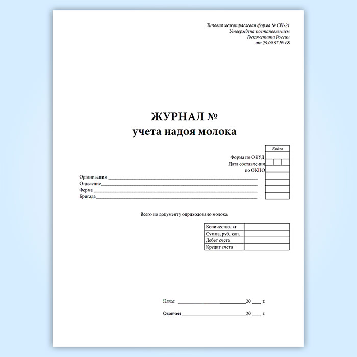 Журнал учета надоя молока (форма № СП-21) в Омске купить