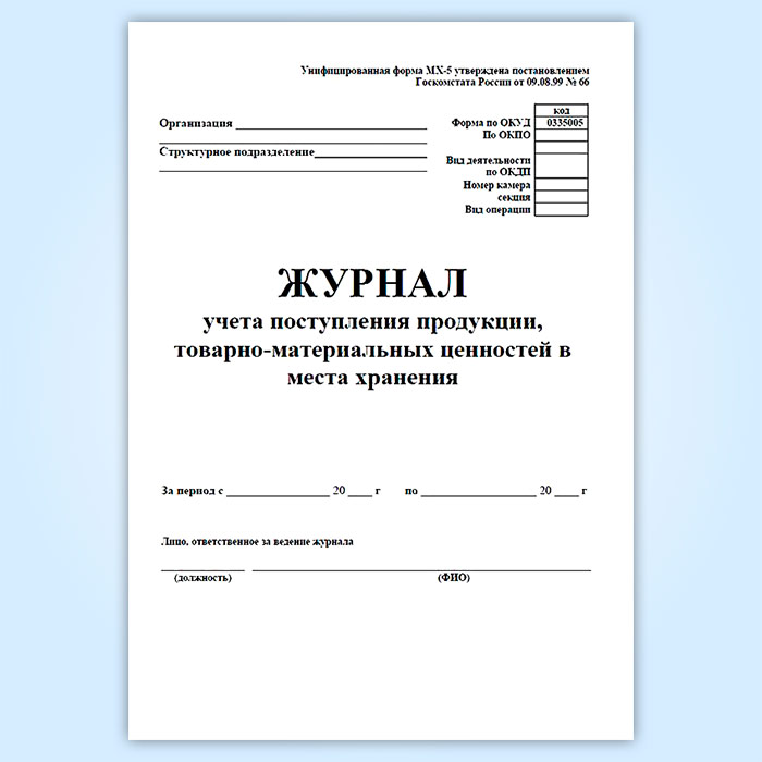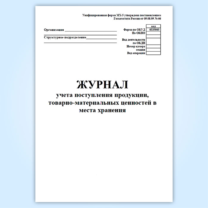 Журнал учета поступления продукции, товарно-материальных ценностей в места хранения (форма МХ-5) в Омске купить