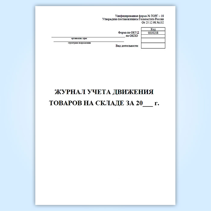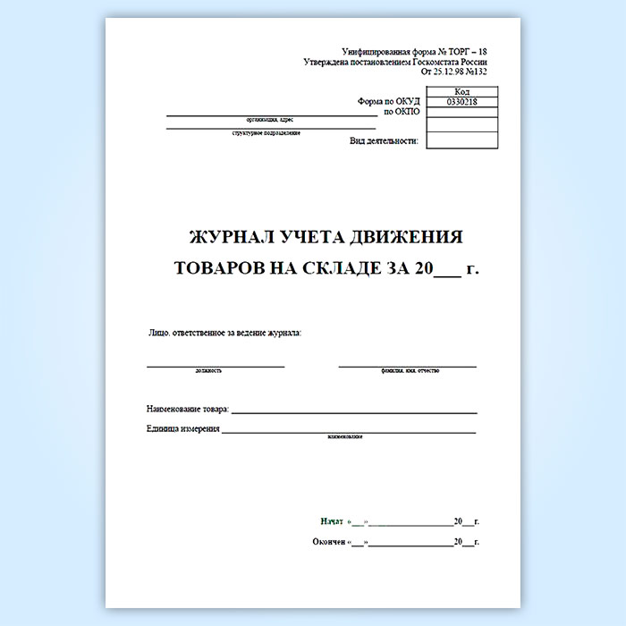 Журнал учета товаров на складе (форма ТОРГ-18) в Омске купить