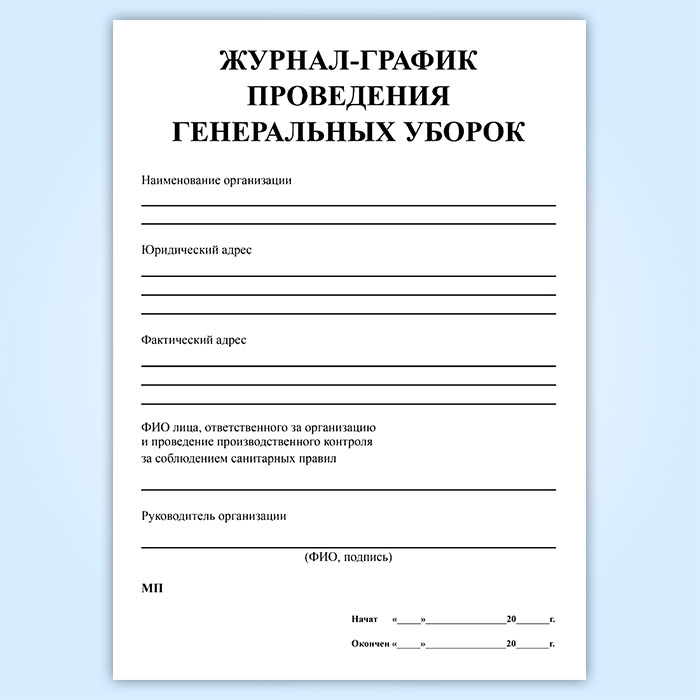 Журнал-график проведения генеральных уборок в Омске купить