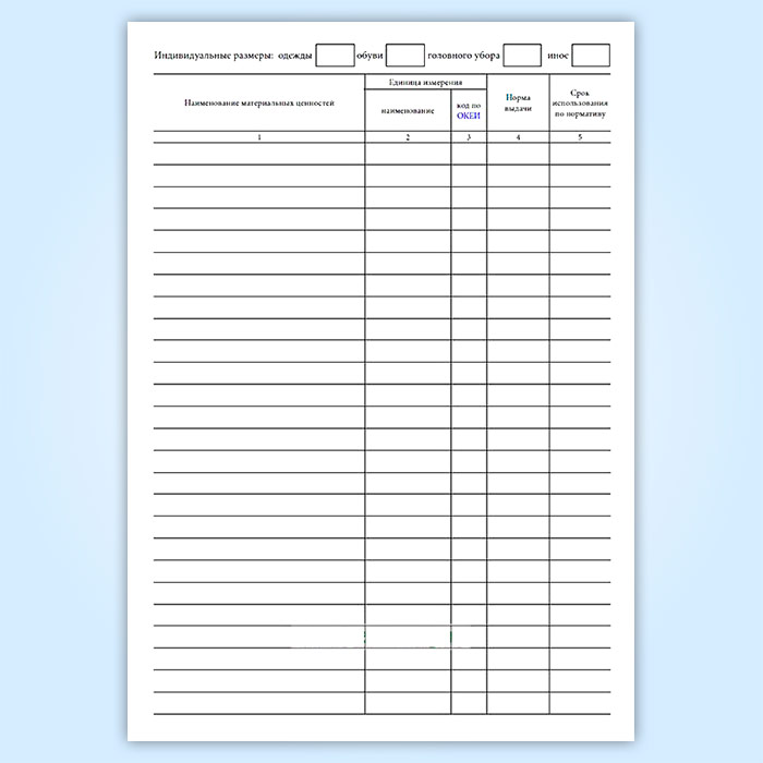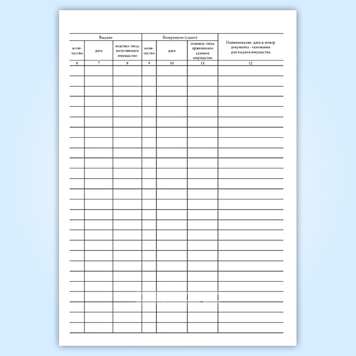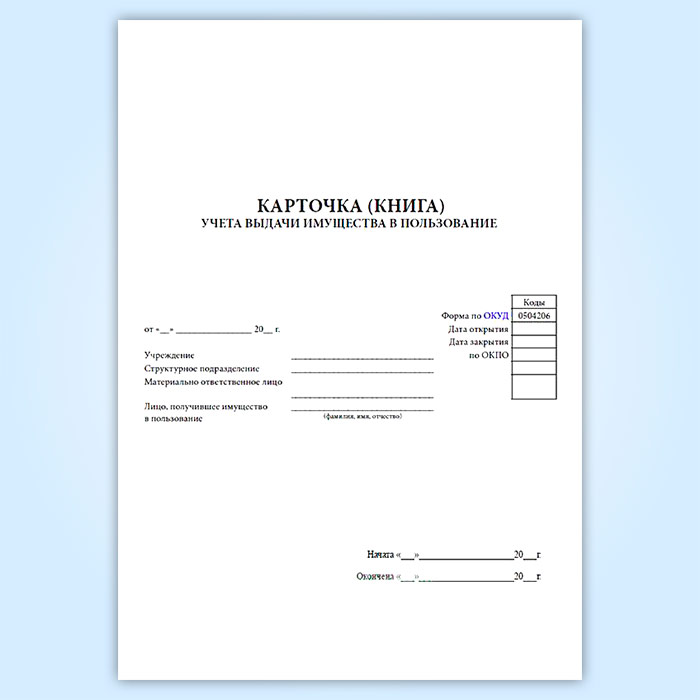Карточка (книга) учета выдачи имущества в пользование (форма по ОКУД 0504206) в Омске купить