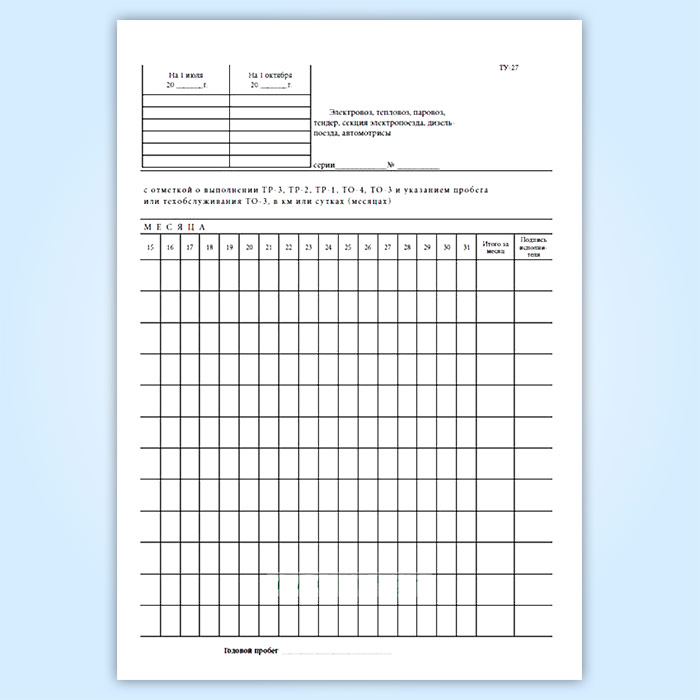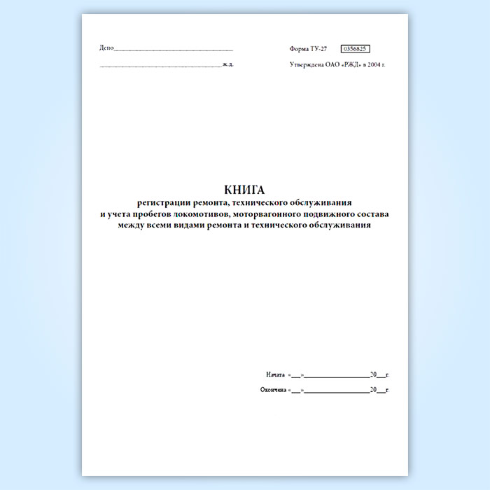 Книга регистрации ремонта, технического обслуживания и учета пробегов локомотивов, моторвагонного подвижного состава между всеми видами ремонта и технического обслуживания (форма ТУ-27) в Омске купить