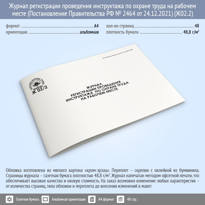 Журнал регистрации проведения инструктажа по охране труда на рабочем месте (Постановление Правительства РФ № 2464 от 24.12.2021) (48 стр., Ж02.2) в Омске купить