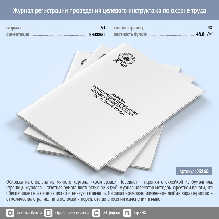 Журнал регистрации проведения целевого инструктажа по охране труда (48 стр., Ж160) в Омске купить