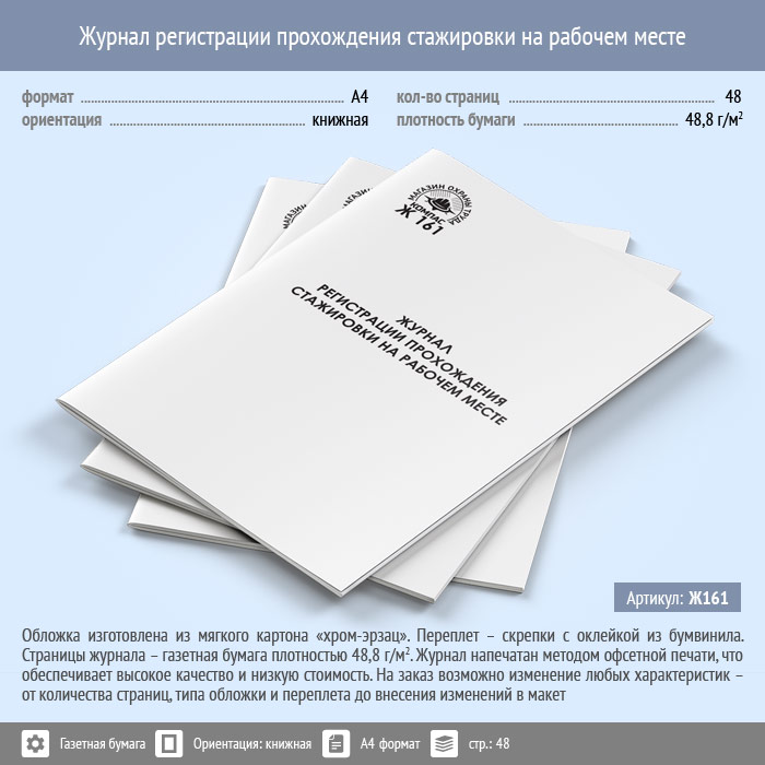 Журнал регистрации прохождения стажировки на рабочем месте (48 стр., Ж161) в Омске купить