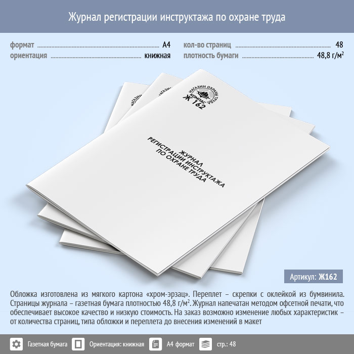 Журнал регистрации инструктажа по охране труда (48 стр., Ж162) в Омске купить