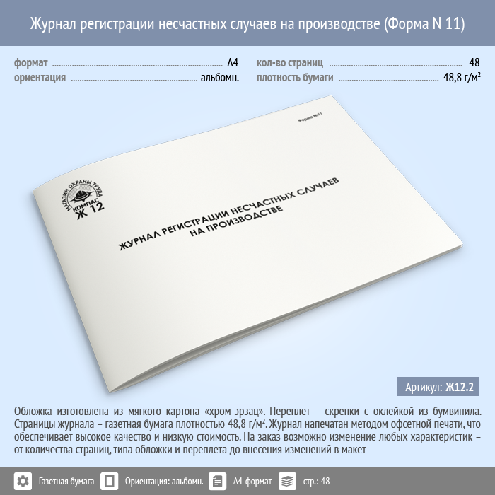 Журнал регистрации несчастных случаев на производстве (Форма N 11) (48 стр., Ж12.2) в Омске купить