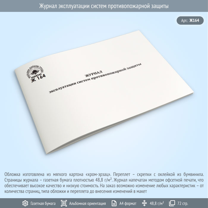 Журнал эксплуатации систем противопожарной защиты (72 стр., Ж164) в Омске купить