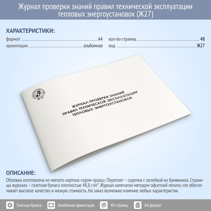 Журнал проверки знаний правил технической эксплуатации тепловых энергоустановок (48 стр., Ж27) в Омске купить