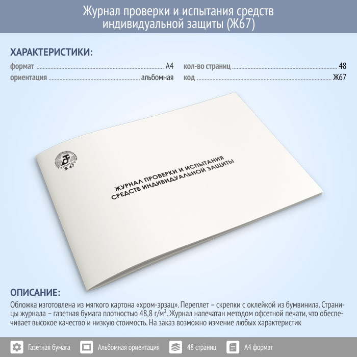 Журнал проверки и испытания средств индивидуальной защиты (48 стр., Ж67) в Омске купить