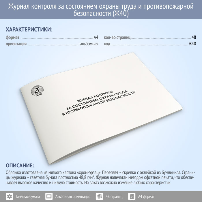 Журнал контроля за состоянием охраны труда и противопожарной безопасности (48 стр., Ж40) в Омске купить