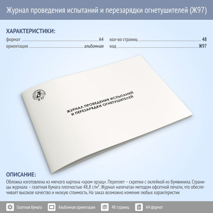 Журнал проведения испытаний и перезарядки огнетушителей (48 стр., Ж97) в Омске купить