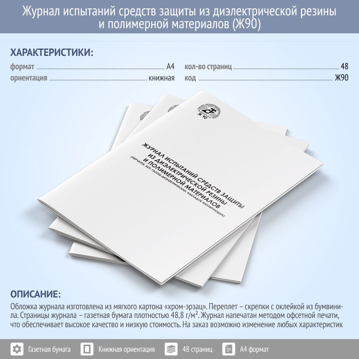Журнал испытаний средств защиты из диэлектрической резины и полимерных материалов (48 стр., Ж90) в Омске купить