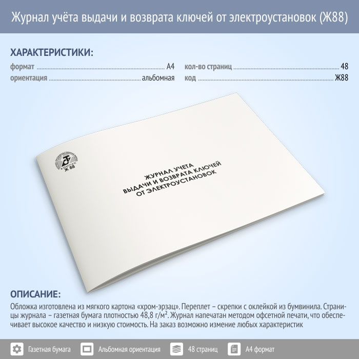 Журнал учета выдачи и возврата ключей от электроустановок (48 стр., Ж88) в Омске купить