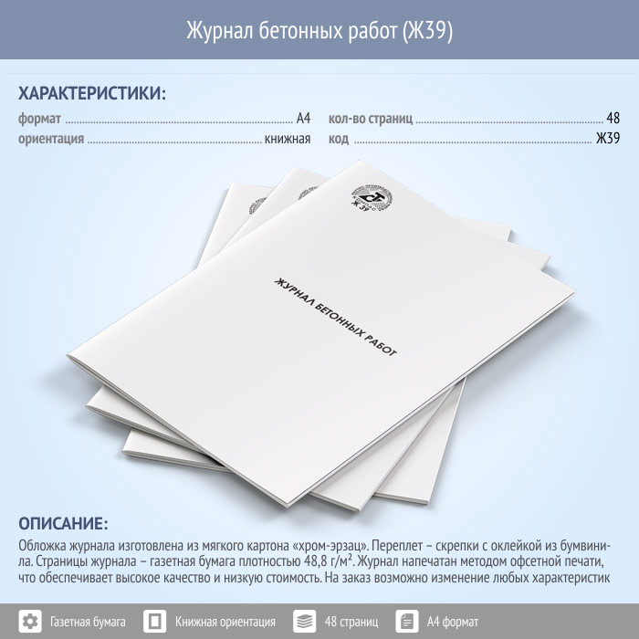 Журнал бетонных работ (48 стр., Ж39) в Омске купить