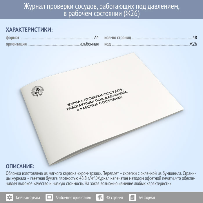 Журнал проверки сосудов, работающих под давлением в рабочем состоянии (48 стр., Ж26) в Омске купить