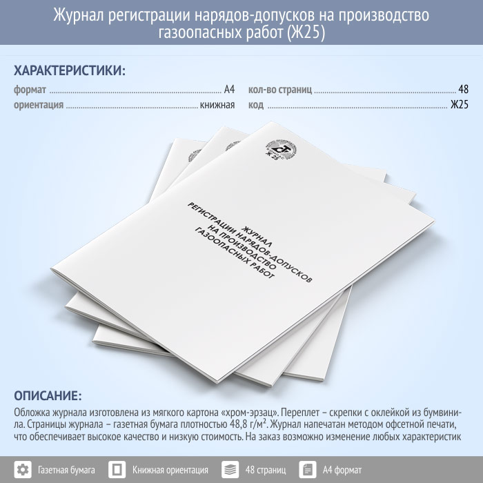 Журнал регистрации нарядов-допусков на производство газоопасных работ (48 стр., Ж25) в Омске купить