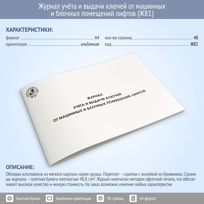 Журнал учета и выдачи ключей от машинных и блочных помещений лифтов (48 стр., Ж81) в Омске купить