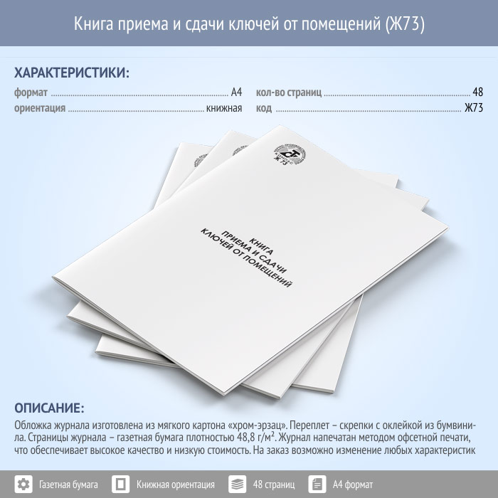 Книга приема и сдачи ключей от помещений (48 стр., Ж73) в Омске купить